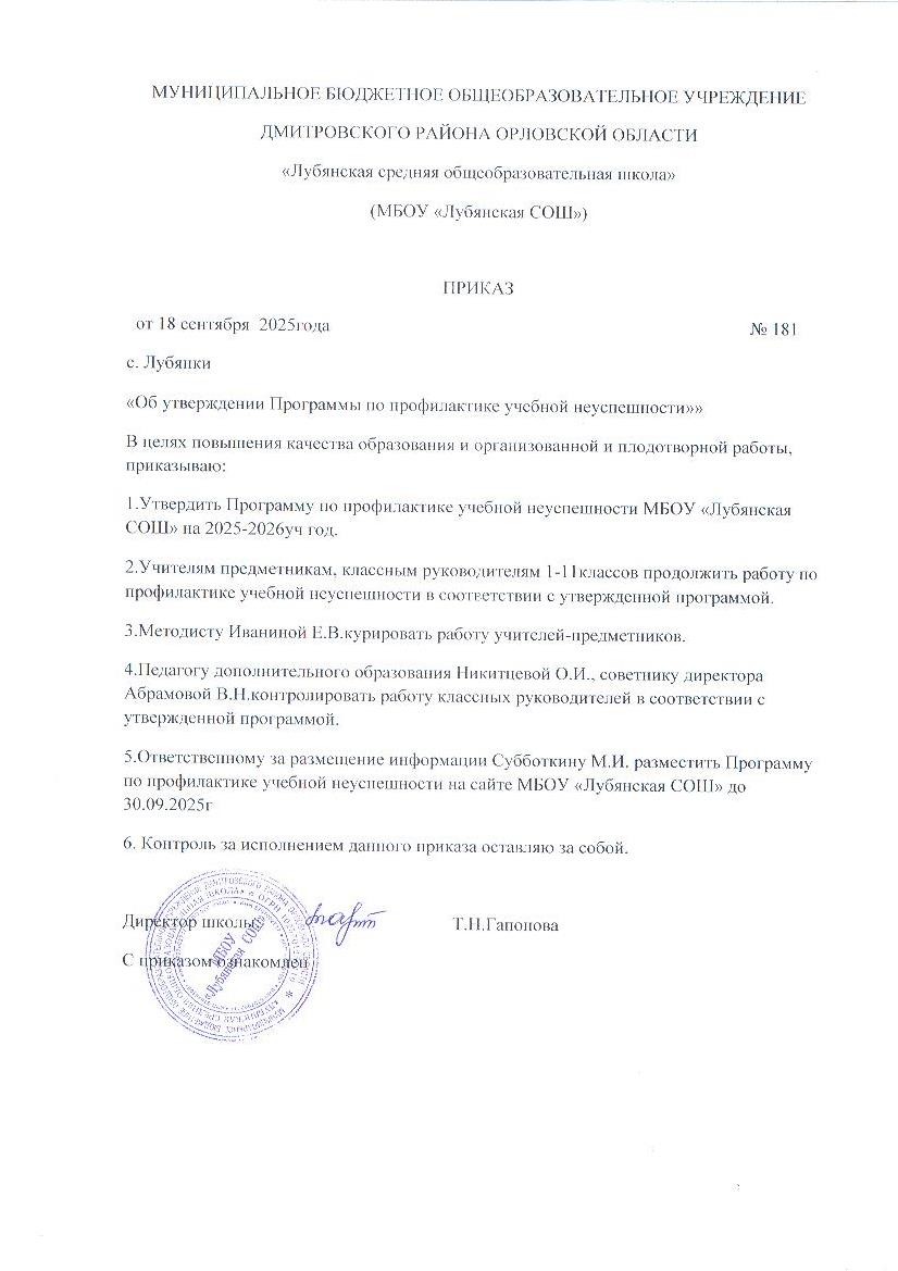 Об организации работы по Программе профилактики учебной неуспешности